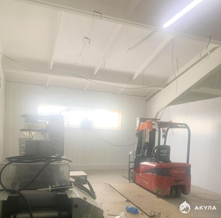 Высота потолков: 5, 9 метра (в коньке), что позволяет размещать стеллажи или нестандартное оборудование.